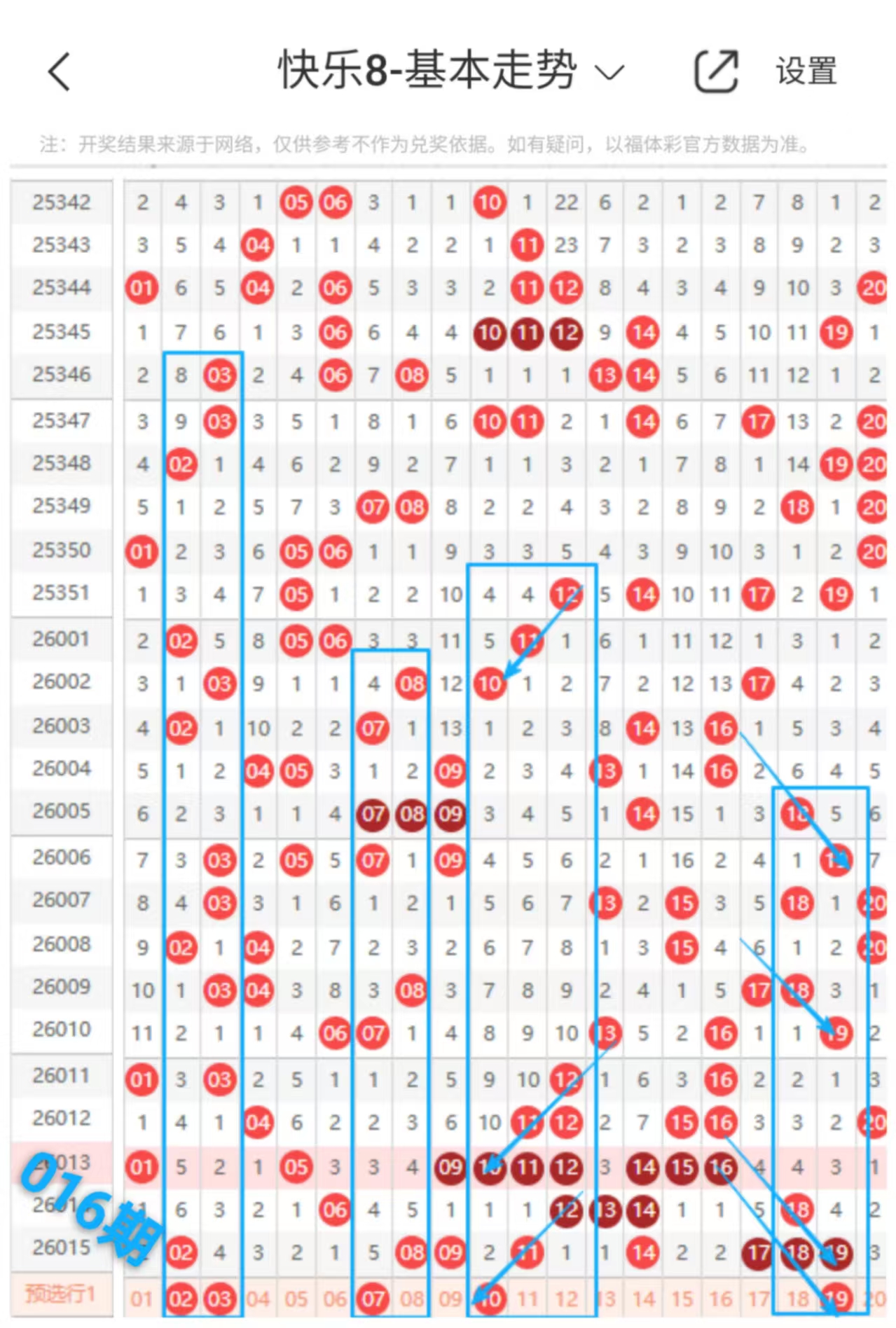 快乐八016期走势分析(本期走势不错+继续跟上吃肉)