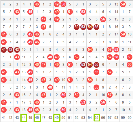 三区推荐号为:44,46,  49,  55。上期三区号码集中在前半区。冷号推荐44,44截止目前已经18期未开出了,可以作为重点守一下,46是热号,三连号几率很大,49和55备选即可。