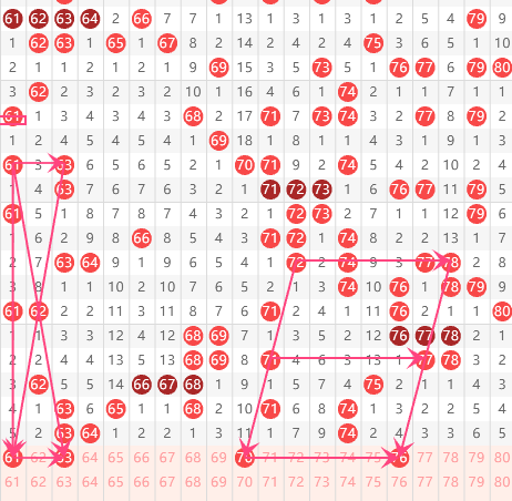 四区分析:【61-80】(走势图标注号码非小黄车大底,请谨慎参考,具体思路将在直播间分享讨论)