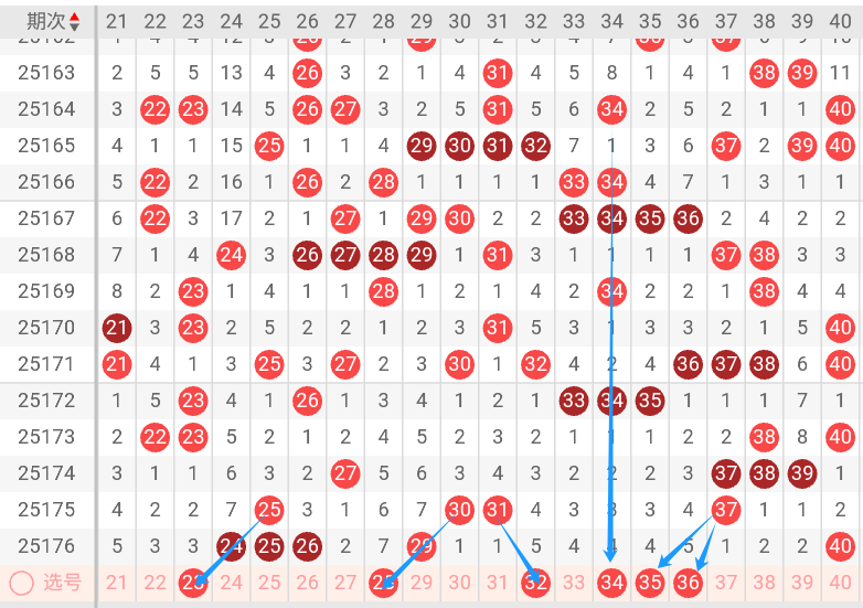 上期当前区段开出5个号码球,再结合前5期出号情况来看当前区段落号率在下降,因此半段本期当前区段出号可能在4个以上,我们再来看下边码,173期开出22边码号,175期没有开出边码号,176期24.29边码号,跟据近几期来看 ,基本每期都会开出1到3个边码号,因此判断本期当前区段可能存在1个以上边码号。再来看看重叠号,最近10期都有重叠号码开出。本区段建议保留1到2个号码作为重叠号。接下来看当前区段连号,最近10期基本都有出现连号,上期本区段开出24.25.26连号,本期建议关注32-36之间可能开出连号。本区段重点关注遗漏数据4-5之间号码。