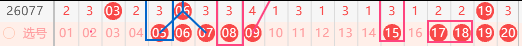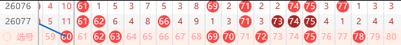 2、26077期开奖简析之四区间比回顾及四区间形态构建浅析: