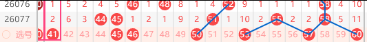该区间落位码数上逐渐常规回补下落输出,上期连号携同尾落及重码构建了整体布局点位,本期可考虑在该区间当中重码继续保持一至二码输出,点位上斜连落位在本区间可以考虑,且该区间冷态码分布相对较多,可考虑49 53 60下落等于一,走势对位上头尾41 60可做联动组合推荐,边码走势下落回补是该区间当中比较好的特色,那么43 46 50 52 54 56 57 59考虑一至三码回补;
