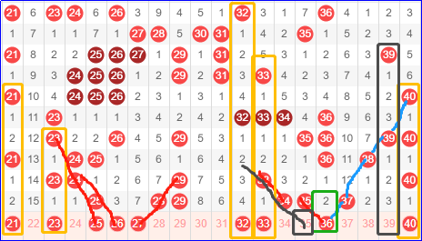 第二区间号码21-40,这一区间从来不会让人失望,依然成领头羊的姿态伴随我们走下去。但每每我们把号码做下去,却偏偏差一点。我都怀疑是不是直播泄露数据,专门避开我们的研究趋势了。但是下一期依然是我们重点关注的区域,尤其是本期这一区依然是连号重地。所以下一期这一区间的防守还是所有区间里面最重要的一个地方,而且必须以连号作防。