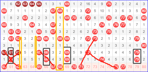 第四区间号码61-80,一区和四区同样的存在罪恶感,看看吧,又是三重号,我们研究78和80,它偏偏开出个79,是不是我们的战略战术泄密了,这真是个问题。虽然两重号出现,但是如果下一期你想做三重号恐怕又是一个坑。前面出现的两重号就是一个很好的例子。所以这一期我打算做空白区域更加可靠。