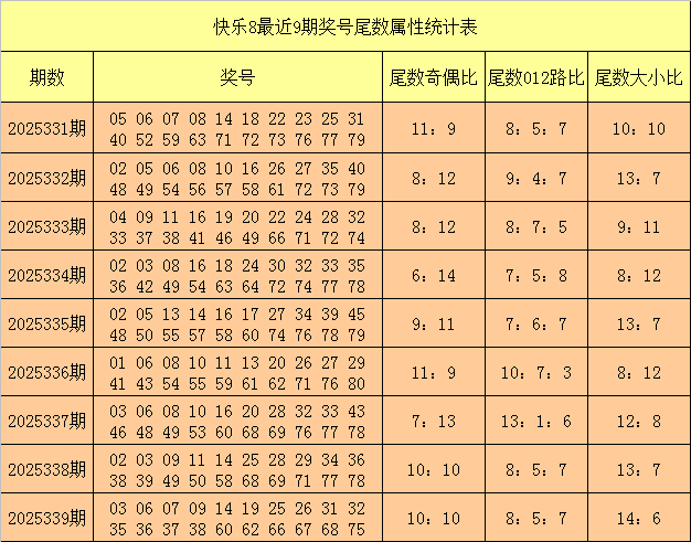 宋江快乐8第2025340期奖号定位尾数分析