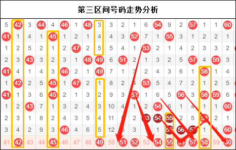 二区果然是个大坑,导致一个号码都没有出现。上一期我们提到预防这里只是昙花一谢,果然就出现了四个号码,应有的走势基本由呈现出来。从本期开奖号码走来看,似乎是预示着号码依然集中在中前期,但是与一区类似的走势相比较,我们发现一区连续三期出现了前后开奖中间短缺的现象,那二区能不能走出类似的姿态,值得我们深思一下。不过重号上应该是本期需要注意的一个地方。