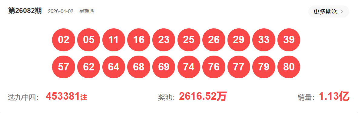 快乐8第082期开奖如下