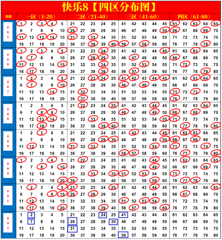 对于快乐8的选号,我着重从四个方面下手,分别是历史同期开奖结果走势、热尾号、四个区间走势。