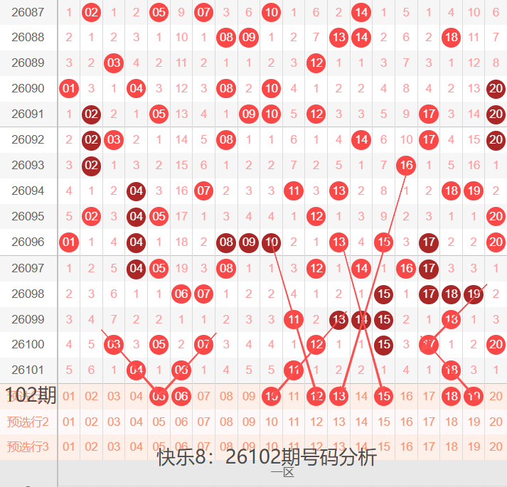 26102期,我们先看下一区间:01-20号码球,如下图: