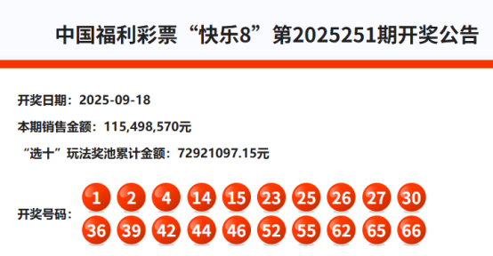 首先我们来回顾快乐8第2025251期开奖号码: