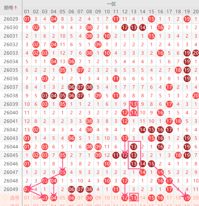 一区间打底号是03.04.06.08.09.13.14.16.19中参考3-4码开出机会,