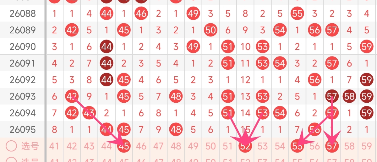 上期仅开出44、45、48、56共4枚号码,刚好符合近10期“4-5枚”的稳定出号规律,且区间内44-45形成连号,56收尾,分布较为均匀。从冷热走势来看,41、52已经多期未出,符合冷号出号的时间窗口,而温热号码中51、57近期出号频率较高,可以选择其中1枚搭配,考虑到上期三区出号偏少,本期可以维持4枚左右的选号量。而且还需注意其他已经连续多期漏出的号码,本期有几率回补综合考虑,本期三区推荐关注号码:45、52、55、57