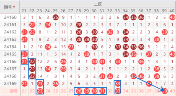 所以该区间我们重点关注一下:23 28 29 30 39号数字就行了。