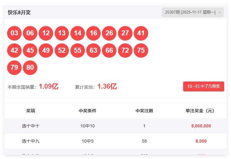 快乐8第308期