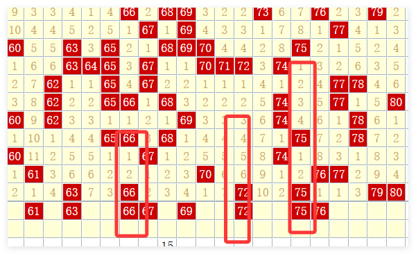 • 四分区法:将80个号码平均分为四个区间(1-20、21-40、41-60、61-80),观察各区间在近期的出号数量,识别当前的“热区”(出号活跃区间)和“冷区”。