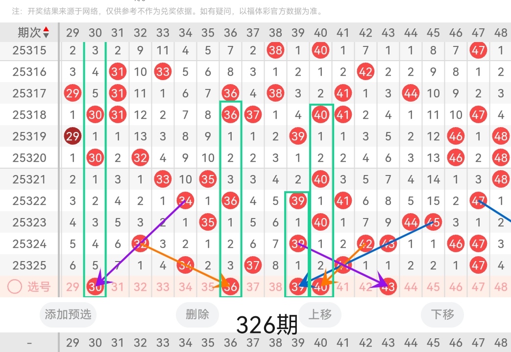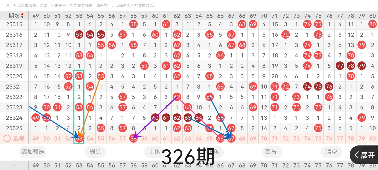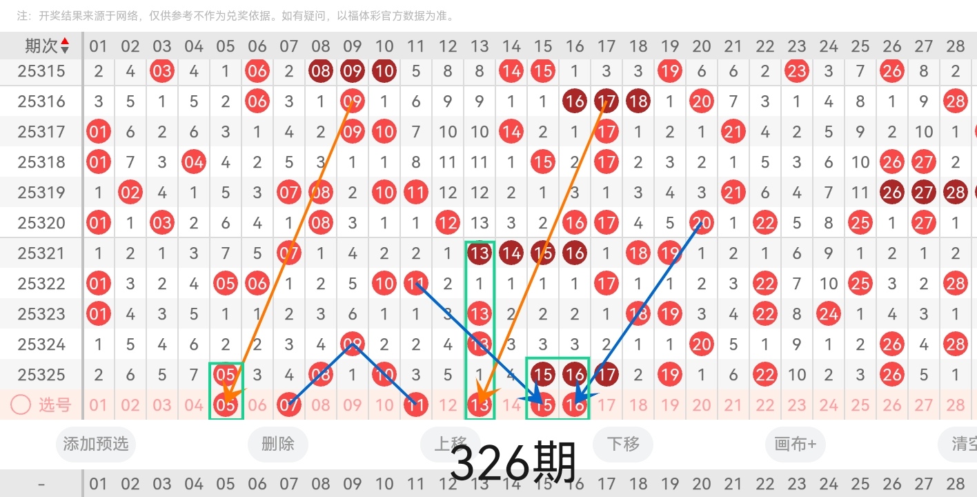 通过以上对上期的简单回顾,下面进入2025326期(下面简称本期)的选号分析: