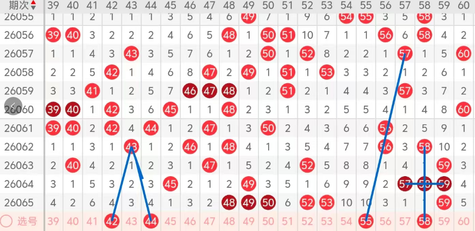 第三区间的走势分析:第三区间上期开出了六个号码球,主要的落号点位在三区间的前后半区,走出了三奇三偶的形态走势,上期三区间的前半区落下了三个号码球,后半区落下了三个号码球,整个三区间处于走热的趋势,根据三区间的走势规律,今天的三区间我们主看前半区42 44的组合,同落下的机会很大,再看后半区55 58的组合,也是热码组合!这四个号球建议大家打个四胆拖,或者打个四码复三比较稳妥,参考为主!