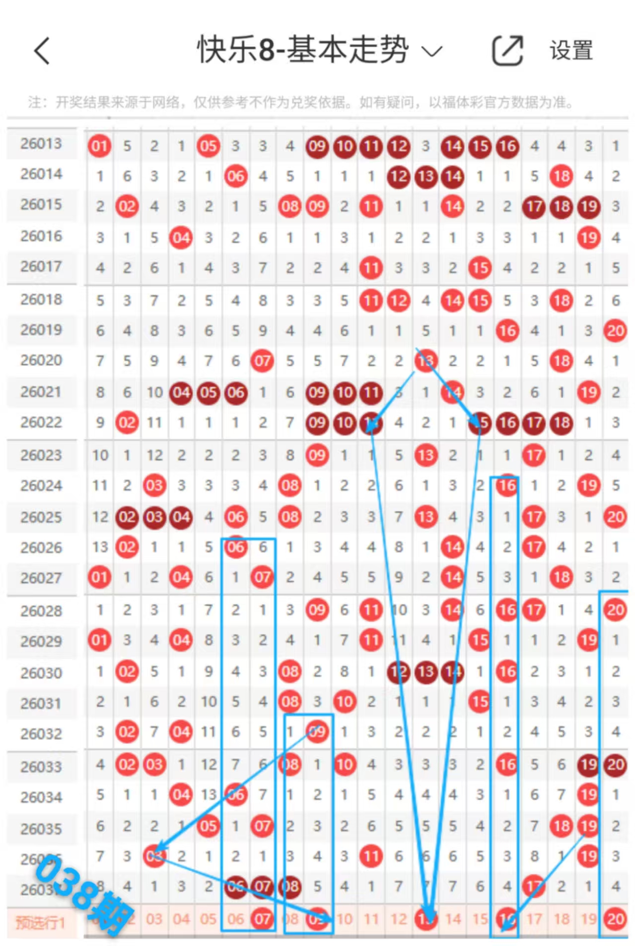 快乐八038期走势分析(本期机会不错+继续跟上吃肉)