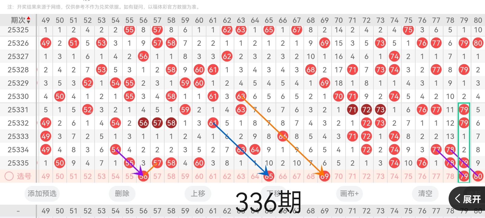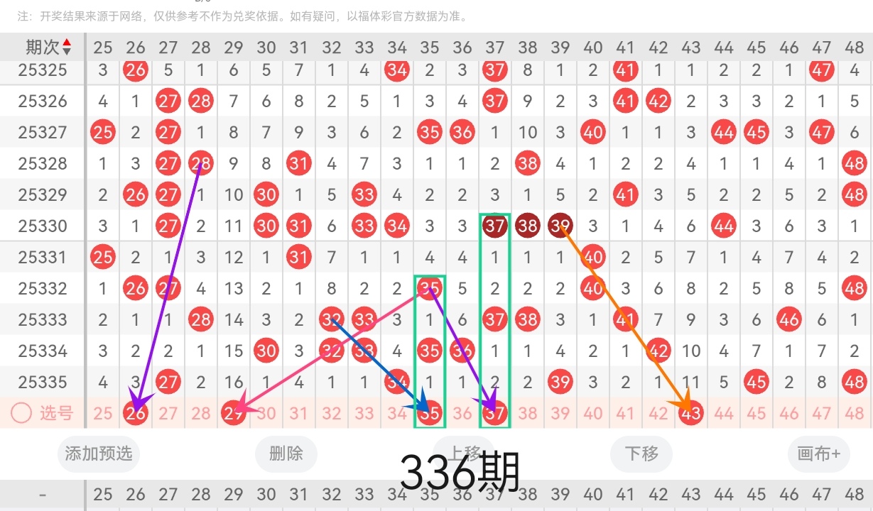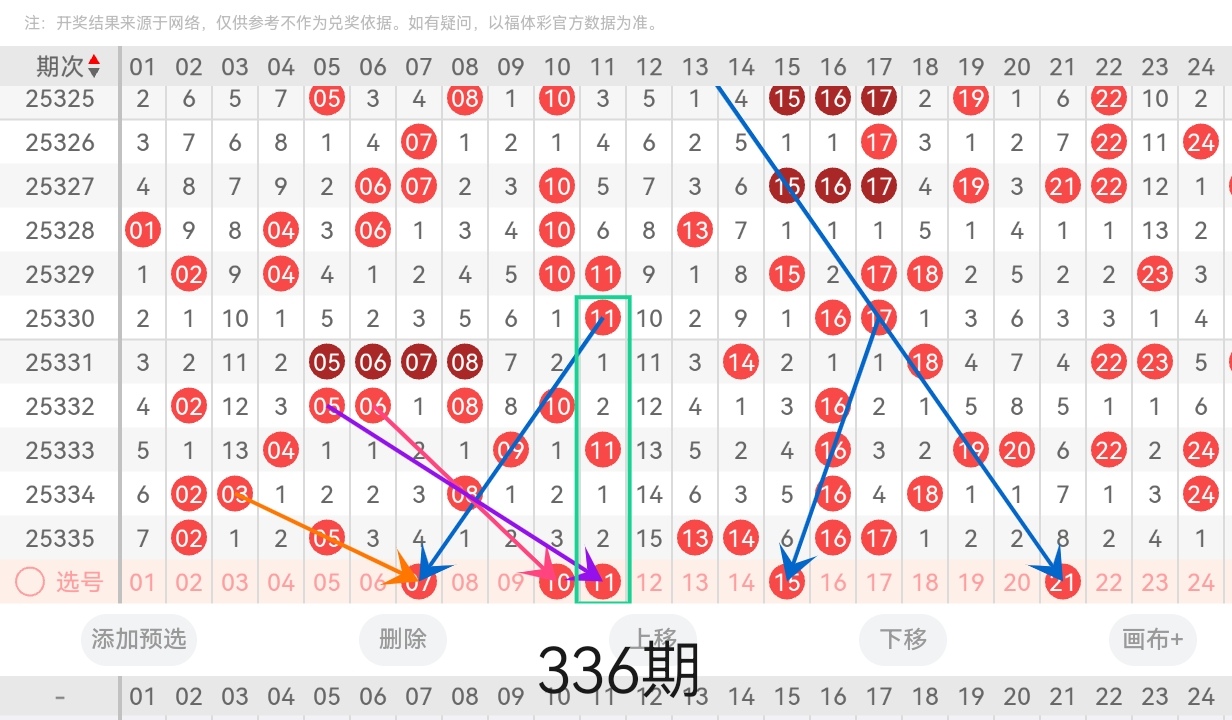通过以上对上期的简单回顾,下面进入2025336期(下面简称本期)的选号分析: