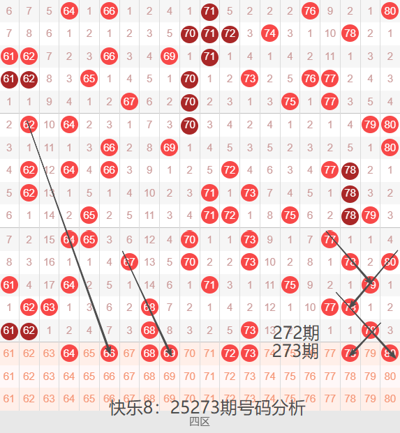 回顾25272期开奖号码:03 06 09 10 11 13 14 16 20 22 25 43 47 50 60 61 62 68 73 79 ,最近一段时间号码爆区几率特别高,目前已经连续多次出现爆区热开的情况,爆区之后基本上都是迅速回调,转换至其他区间继续暴热,大家若是能抓准区间,或许有很大的机会,但是号码的变盘规律是非常的快,很难把握,个人建议谨慎选择,不要 盲目的去操作~~