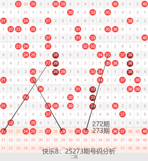 上期该区间开出:22 25,2个号码球,上期区间冷开,二区间目前的状态整体可能要开始走温热状态,近期可以开始多关注区间内空位的回补形式,本期二区间个人预选号码:21 24 25 27 29 31 32 36 37 40,21号是遗漏间隔2期的对称号码,均线三斜连落位点,24号是遗漏3期的号码,25号本期看重码的机会,27号是遗漏1期的号码,29号是均线三斜连落位走势,遗漏6期的号码,31号是遗漏4期的状态,32号是均线三斜连落位点,遗漏9期的号码,36号是遗漏2期的号码,37号是遗漏1期的状态,40号是遗漏10期的号码,通过以上分析,二区间终选号码:21 25 27 31 36 40 。