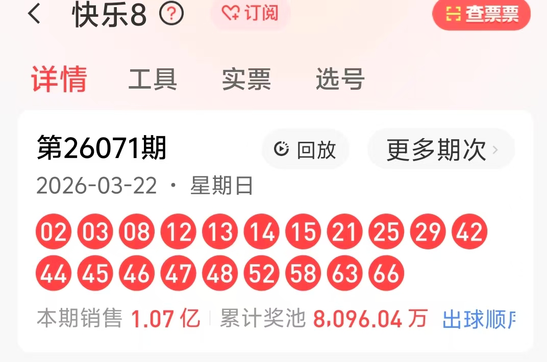 第26071期 开出了02-03-08-12-13-14-15-21-25-29-42-44-45-46-47-48-52-58-63-66