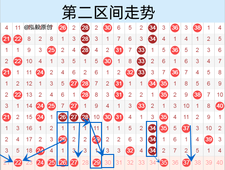 该区间的22号数字在本期很好,估计打的人也很多,我们也是要做号的,不能丢了。该区间的三连号26 27 28号本期我们也是要注意落号的可能性了,本来上期就应该落下一码下来的,本期我们可以防守一下落下连号的情况。上期34出了3重号,本期我们要防守一下出4重号的可能了。他的邻号33 35我们也是要注意的。