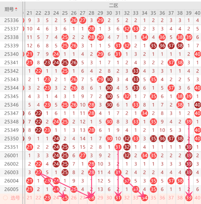 二区间注意打底号是21.23.25.28.30.31.34.39中关注2-3码开出机会。