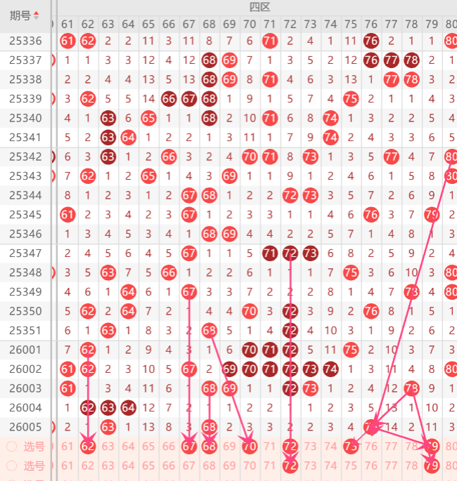 四区间的打底号是62.66.67.68.71.72.75.76.79..中参考3-4码开出机会