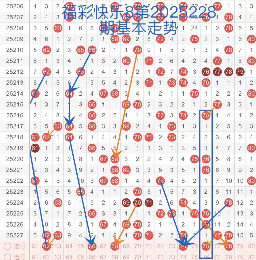 下面是我对2025228期福彩快乐8的分析和预判,希望通过我的分析能让大家今晚大满贯!福彩快乐8上期开奖号码如下图