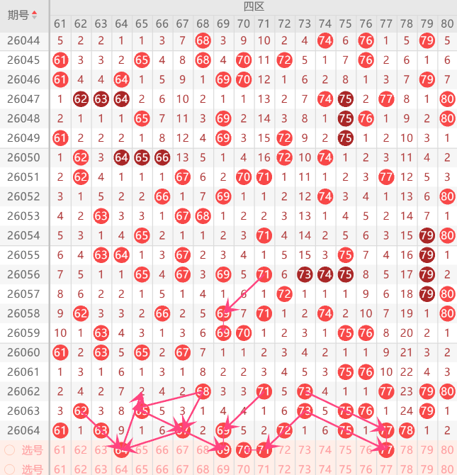 .那么四区间关注的打底号是63.64.66.67.69.70.71.74.73.75.77中参考3-4码开出机会
