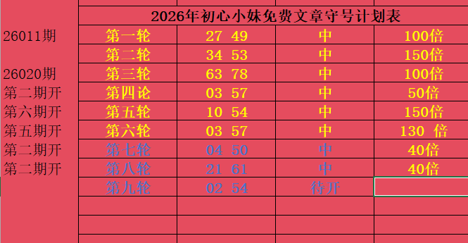 2026年选二守号十期计划