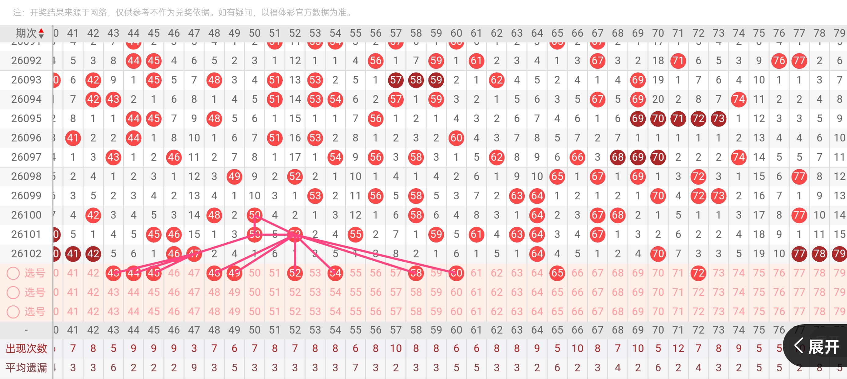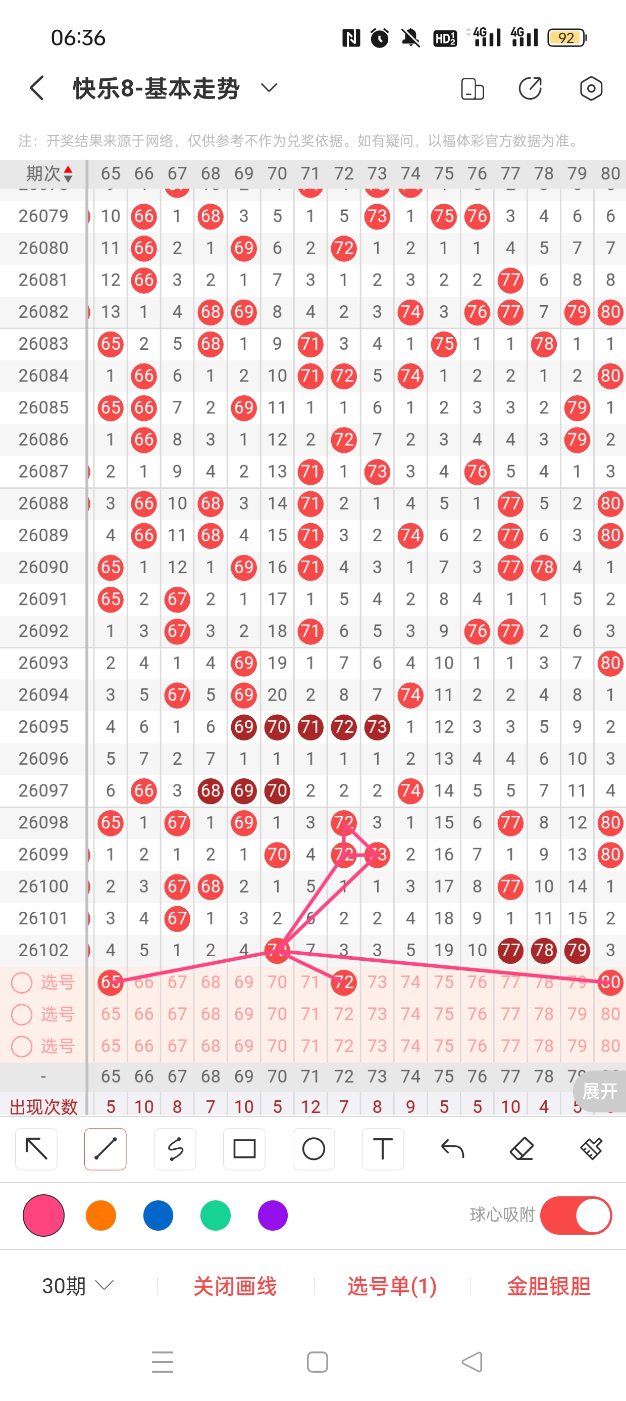 6、分区法:快乐8共分为4个区,一区:1-20,二区:21-40,三区:41-60,四区:61-80。