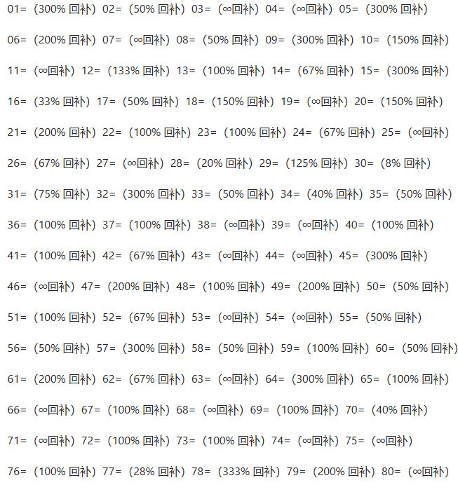 然后取近100期01-80所有号码遗漏回补率统计。