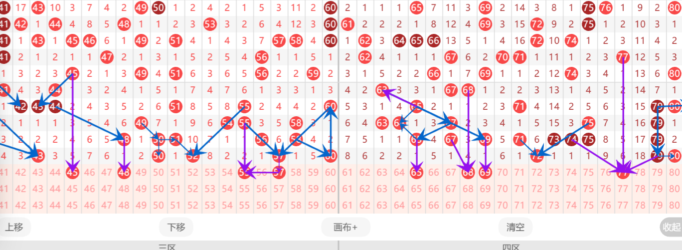 上一期第四区间开出:72.79.80这三个号码整体是冷态,那么本期第四区间根据走势来判断我有以下几点建议。