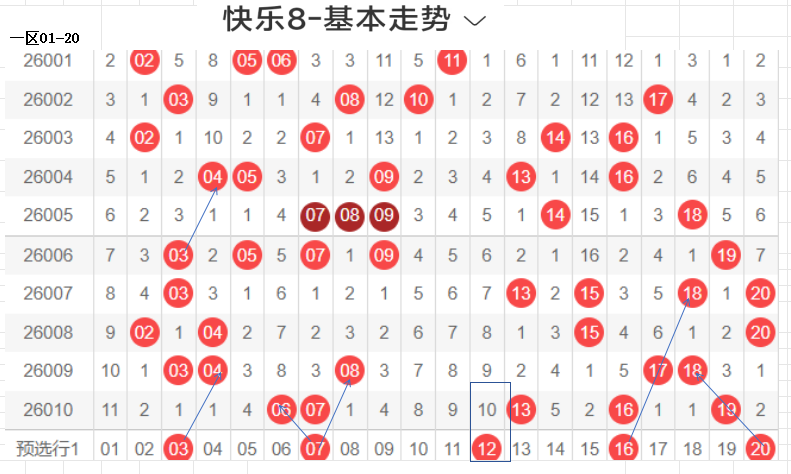 大家好,我是江湖白菜,数字彩长期专研者,擅于分析数据,主研快乐8,观走势图,运用一套独方法定胆,定码。以20个数为单位分一区间,走势,区间比,尾数比,三者合一,开奖号码=0码为条件计数,做为条件来选测数据.以下是分析: