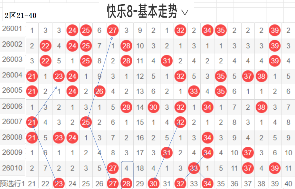 二区(21-40):遗漏5期以下有16个,0码27 33 37 39 4个,数据所示,冷码平均,选择条件增多了.上期开出了4个号码,出码比较分散.这期布防相应增加,重码按比例落这区较少,先给出关联码34,这个区间间接走势,温区,21-30区间上期开了1个,依旧不是重点选号区间,31-40区间开出3个,本期关注热码的回补,间隔小遗漏值最佳,3字头转热,这个小区热码注意回调,可以做关联码的布局,注重温冷码的回补.