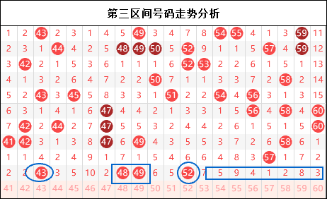 第三区间思路:三区在断区之后回补四码,整个区间依旧是走冷的趋势,毕竟四个区间个数最少的还是第三区间,我们昨天的思路中开始布局三区,显然是不成功的。那今天的我们在三区的思路上几乎是没有走势可以依据的,所以两个独码,一个连号的走势几乎是选择性最容易出错的。这样来看索性换位去做也许更好一点。具体三区思路我们小车推荐文章见,点击链接即可进入。