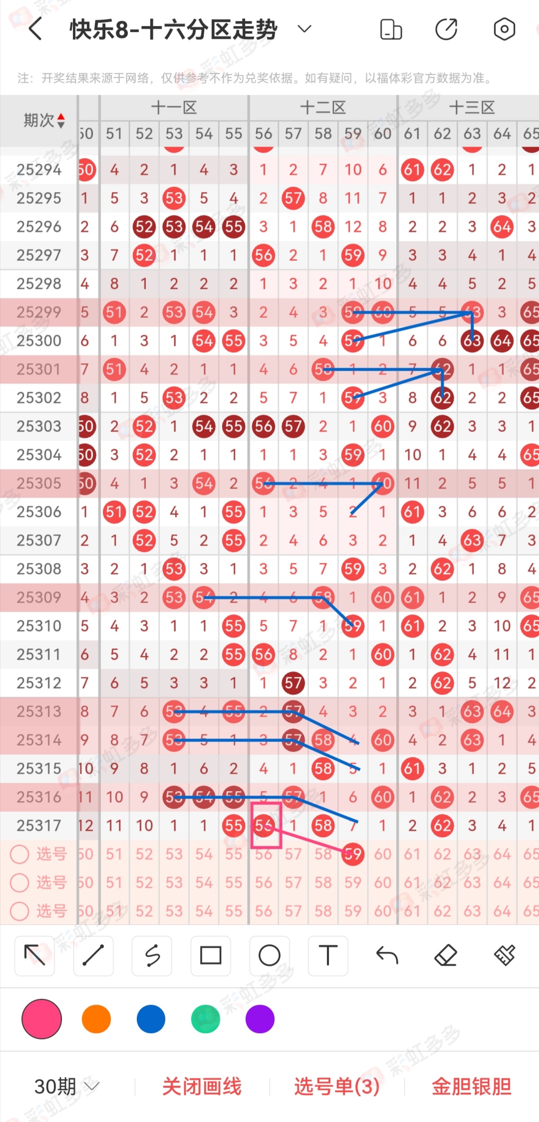 第二个推荐的地方,我还是想讲一下59这里,5头数据出现的多,状态无非就是极端与稳定,依据现在的57 58 59来看,59是那种存在诱惑点的号码,若即若离的那种,不要觉得可惜,打了就是觉得上当了那种。5头有一个标志性的逻辑特点,和6头的同尾高频,且目前就剩下两个组合没出,所以既然没出就直接不考虑,但是单码是有面的。所以52 62 54 64需要挑选,选择正确的概率还是很大的。我们回到59这个点,理论数据分析,59是坑,所以这里的点位可以考虑58走重,或者说直接跳到60。60的间隔1期很有特点。