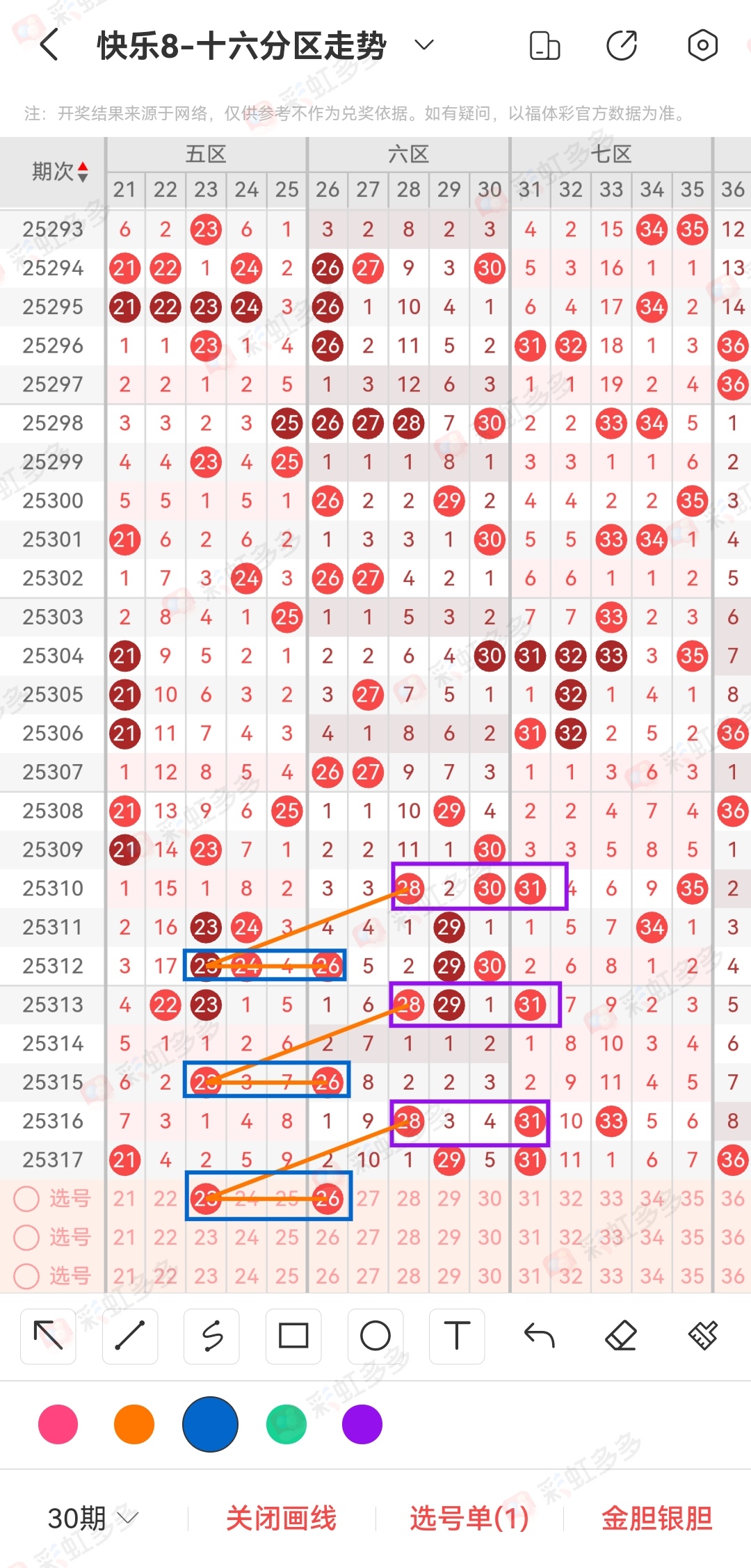 今天的分析文章我们讲一下延续性的稳定性。很多规律数据都是存在后知后觉的点位。第一次抓到了,会有思维惯性,当然这不是说不对,只是需要注意一下是否符合近期的走势状态以及需要观察变量的延伸点位。我举一个例子,今天在圈子动态里面发现大家看好26的点位,26同出23。这里的逻辑点位在于28 31顺位间隔1期同出23 26。如果是小范围的理解是这样子说的,但是两期数据不用够代表稳定,当然我们这样子看的时候指定会有一个前缀,就是在理想状态下,28 31间隔1期顺位23 26,或者顺位全部的点位03 19 23 26 80。那么这样子出现多码,我们考虑一下第一期的顺位,以及同出。①同出28 31的号码存在55一个,也就是说当期3码同出,②顺位28 31的号码存在44 79。反过来看2期数据同出15 43 44 60 73 79,实际3期同出44 79。所以6码出2码。那么今天第三期5码理想能够出现几个呢。所以综上,理想的状态同出23 26是不太严谨的。额外的讲,区域性对于这里的逻辑并没有占太大的优势。尤其是出号都在后区。这样子类比23 26还没有80的机会大。3期数据且间隔期数是短期内,这个数据结论其实是需要搏一搏的,如果时间跨度大,且规律数据分析稳定得出一个结论,那么是可以尝试定位单挑的。短期数据少只能说阶段性的高频,这里不应该定位结论。不够稳定。所以23 26这里的号码,大家小心一点点。