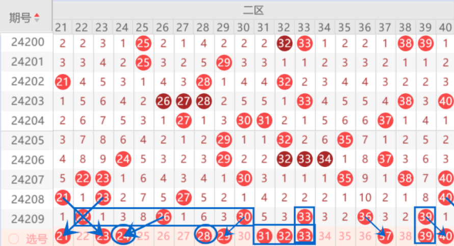 本期的21号数字我们注意一下出号情况,属于梅花号码,出号机会也是有的。本期的24 28号数字我们注意一下出一个号码的情况,本期都是空三中心号,又是连在一起的,出一个号码的机会是很大的。本期的29号数字我们注意一下出号情况,属于空三对称号码。本期的31 32号数字我们注意一下出一个号码的情况。本期的40号数字我们也是要防守一下40号数字的出号情况。