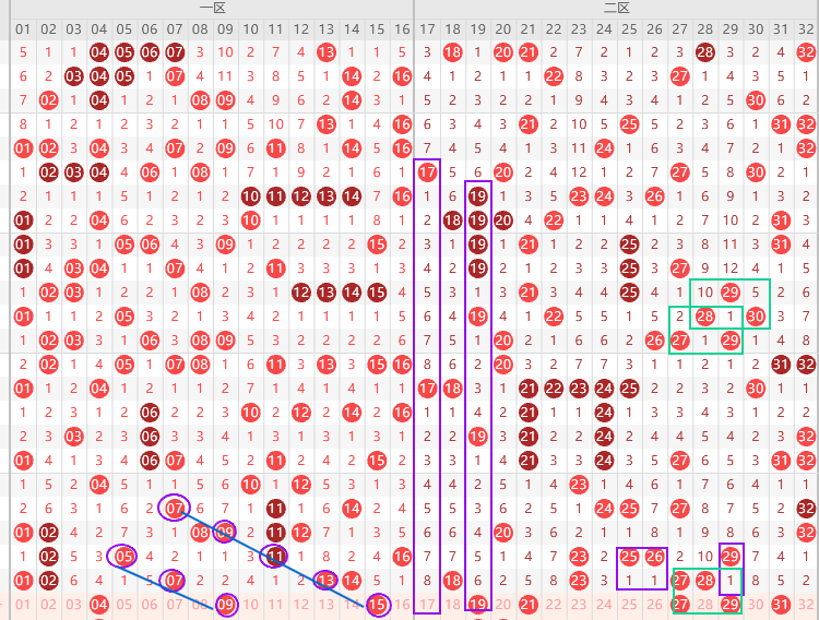 边号17 19  22 24 26 29出一码,重号18 23 27 28 出一码,遗漏值17 19二出一,有机会同出优先19,百期内19是最大遗漏值,短期规律二区上期号码隔一期回补一码,也就是25 26 29三出一,重号27 28二出一,本期防同尾号17 27或者19 29,凤尾出边号,一般会出二期,也就是27 29二出一3开头30 31二出一,结论关注五码19 25 27 28 29 防30,一胆19双胆19 27