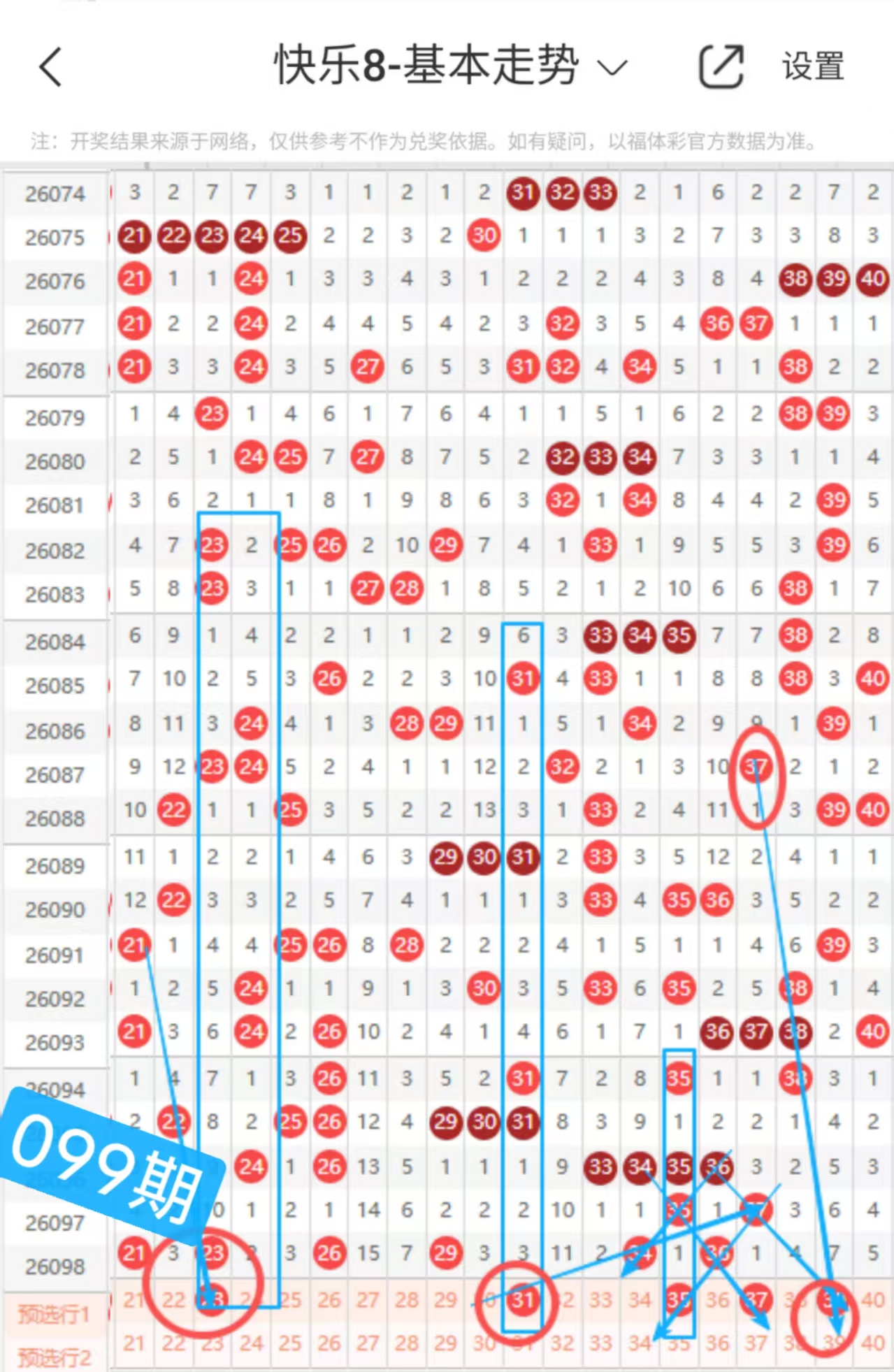 快乐八099期走势分析(本期机会不错+继续冲击全拖大奖)