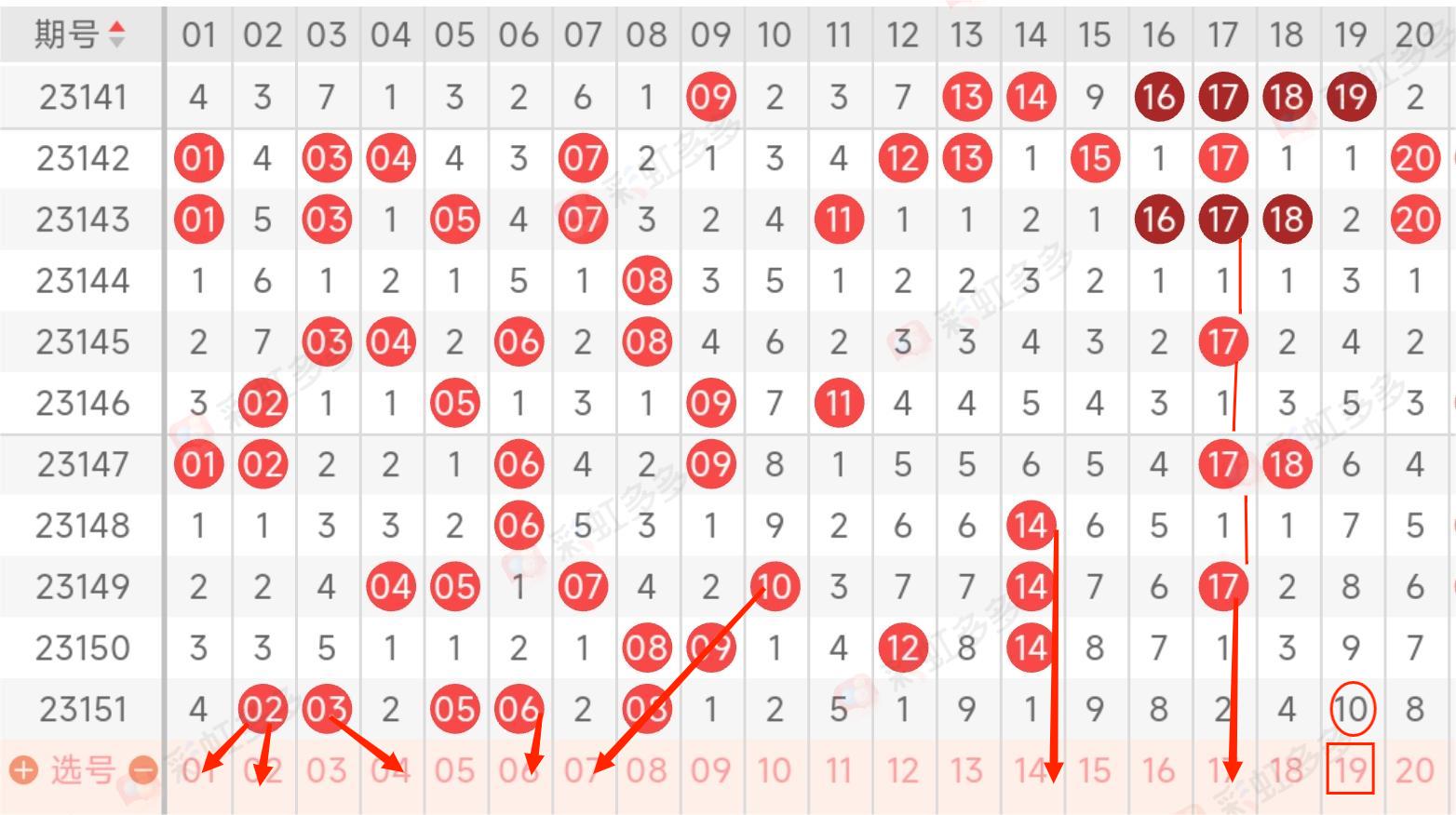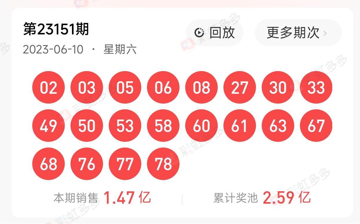 首先回顾上期的开奖号码::02 03 05 06 08 27 30 33 49 50 53 58 60 61 63 67 68 76 77 78