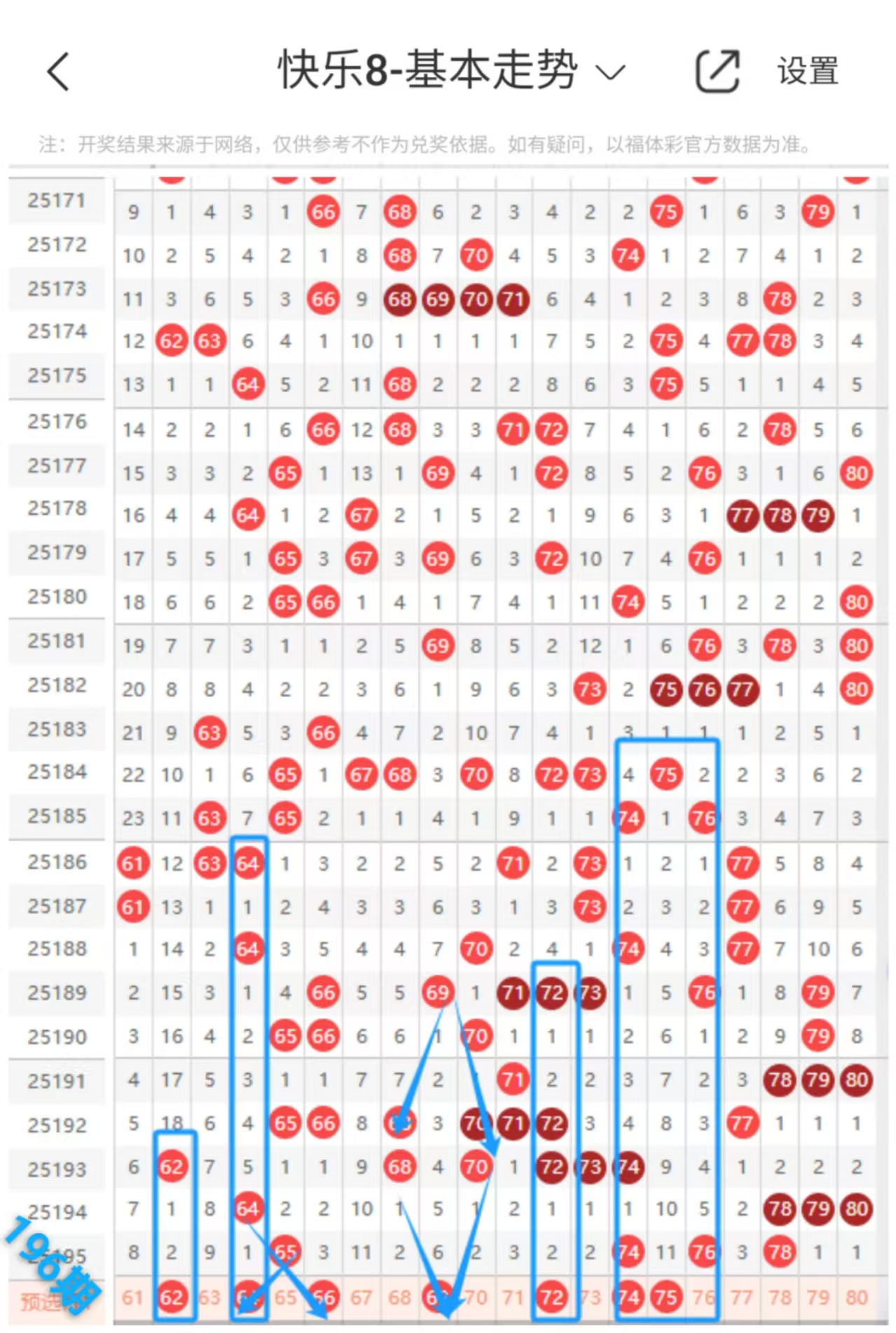 快乐八196期走势分析(上期胆码中2个+继续跟上吃肉)
