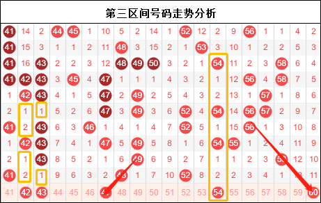 第三区间是昨晚最悲催的一个区间,不仅看好的49没有出来,甚至一度出现了大面积的号码消失。而且是连续两期号码走冷。这在研究周期中成为了今晚艰难的抉择,原因在于是否真正的走冷,还是轮换一区和二区一样的走势,我们有点分不清楚。但是从防守角度来看,这里今晚还是有个别号码可以斟酌使用的。