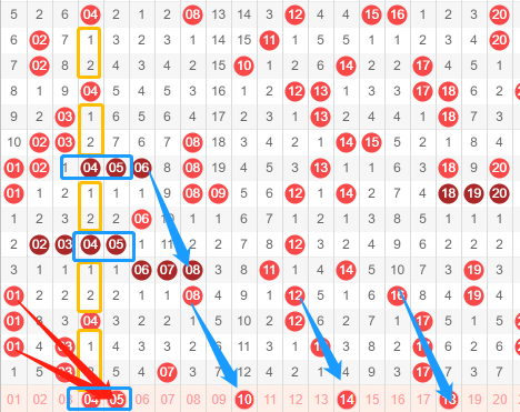 第一区间号码01-20,一区重点关注好04,按照之前每隔两期出现一次的概率,这一期依然是重点,然后就是一区的连号注意04,05。08-11这一块很久没有出现过连在一起的时候了,按照冷热交替应该是要注意防守了。号码17从本区重号规律看,出现四重号的机会不是很大。但是号码18倒是可以引起注意。