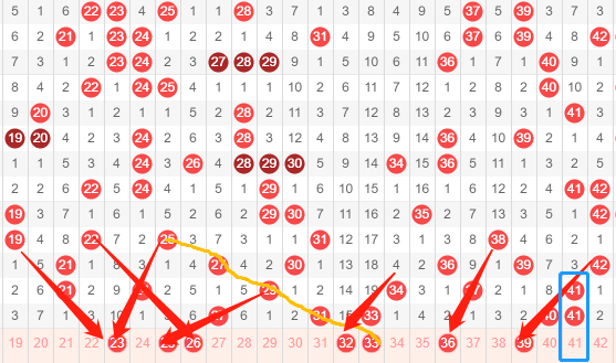 第二区间号码21-40,理论上二区应该是要转回加热阶段了,可以在本区进行增加号码了。前期 出现的三连号四连号该重新找回场子做一场交战了。号码31和33这样的冷号这一期都能走出来,那这一区间一定是要回潮了。所以这一期开始大家注意号码30,可以在其左右做一些文章了。