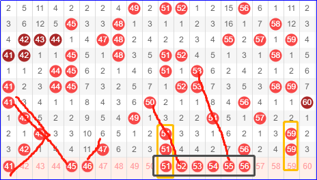 第三区间号码41-60,三区昨天挑战单码56成功,其他无优势。这一期在走势不明朗的情况下,真的是迷雾重重。究竟该如何应对本区,甚至是整个盘面的方向成了难以下咽的梗。且注意本区连号表现。