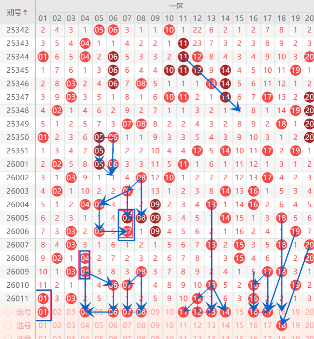 一区间打底号是01.02.04.06.07.08.11.12.13.16.17.18中参考3-4码开出机会,
